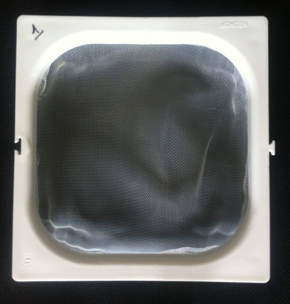 Wat niet direct zichtbaar is, is de inwerking van de in dit soort reinigers aanwezige chloorcomponent op het kunststof, vooral de impact op het kwetsbare gaas.